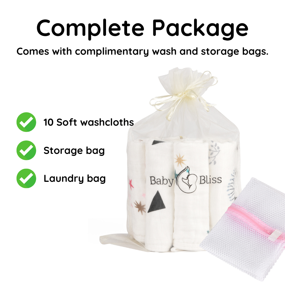 Complete Set: Includes 10 large muslin wipes and storage pouch for convenience.